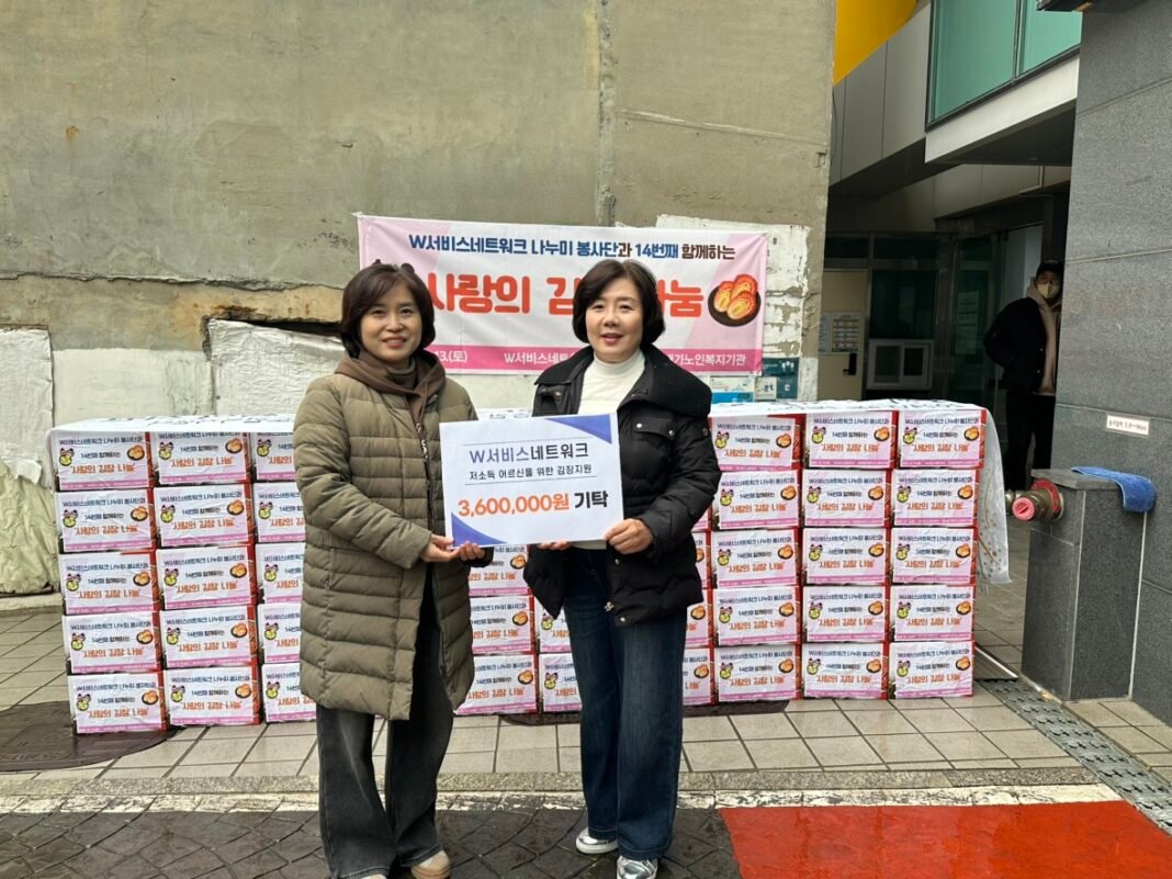 ‘W서비스네트워크’가 최근 창립 20주년을 맞아 ‘마포동부재가노인복지기관’과 함께 지역 소외 계층을 위한 김장 김치 나눔 행사를 진행했다. 이번 행사는 사내 봉사단인 ‘나누미봉사단’을 중심으로 14년째 이어져 온 ESG 경영 실천의 일환이다.