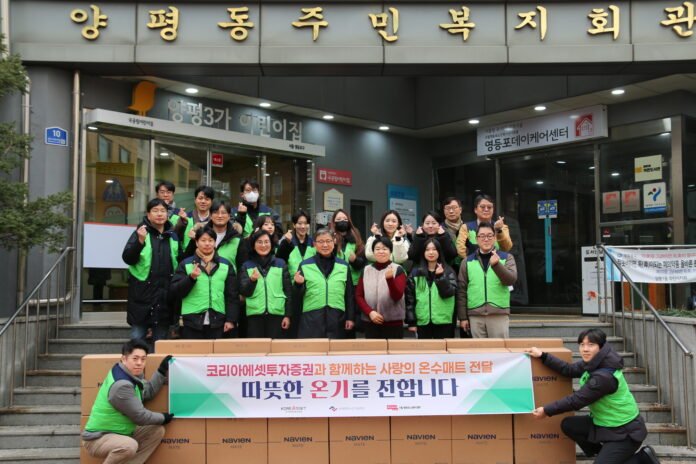이번 활동은 겨울철 한파에 취약한 어르신들의 건강과 정서적 안정을 돕기 위해 마련됐다. 코리아에셋투자증권 임직원들은 후원물품 전달에 그치지 않고 직접 어르신 가정을 방문, 온수매트를 설치하고 말벗이 되어주는 시간을 가졌다.