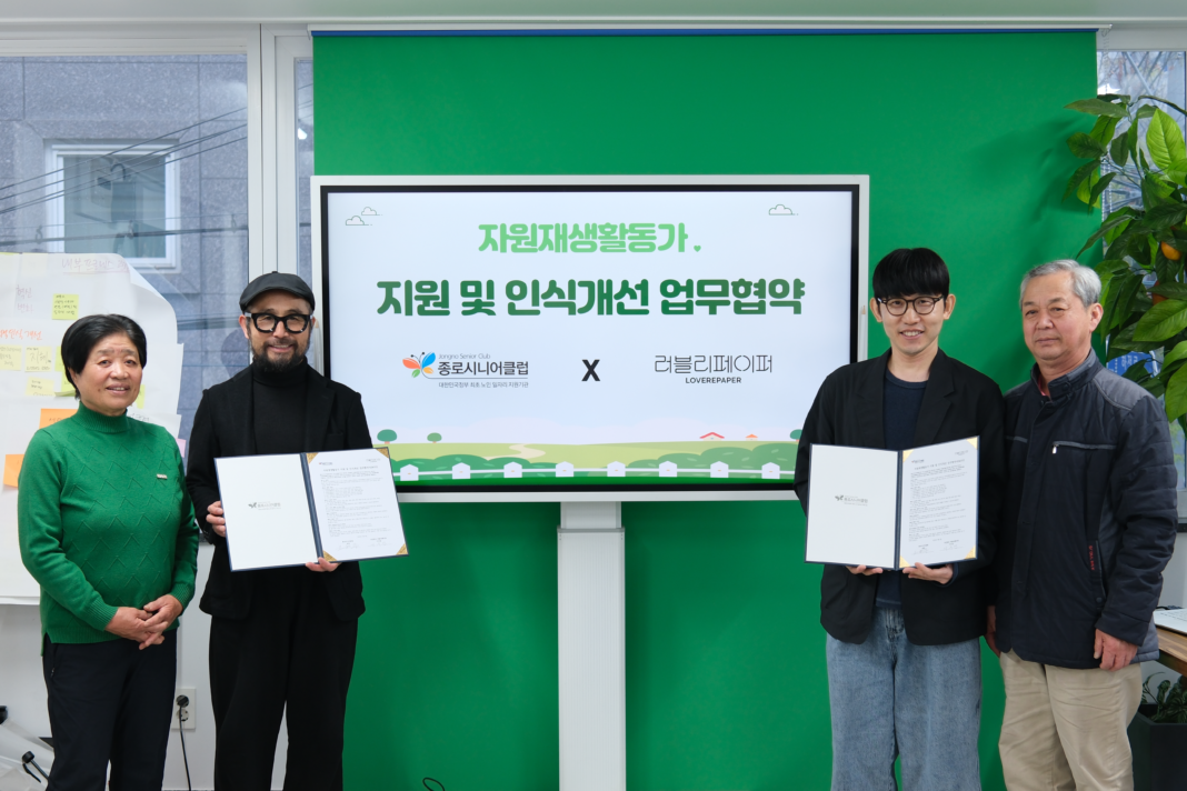 종로시니어클럽(관장 고현종)이 폐지수거 어르신의 삶의 질 향상을 위해 러블리페이퍼와 업무협약을 체결하고 협력체계 구축에 나섰다.
