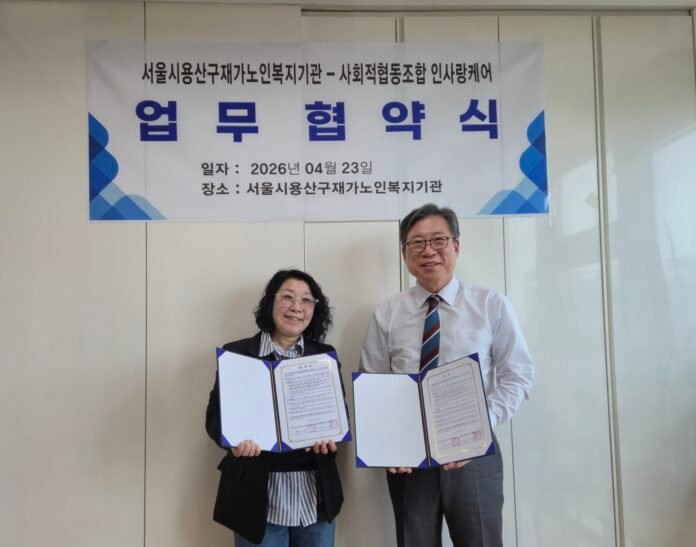 서울시용산구재가노인복지기관과 사회적협동조합 인사랑케어가 지역사회 어르신의 안정적인 재가생활 지원을 위해 손을 맞잡았다.